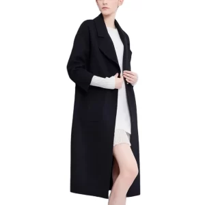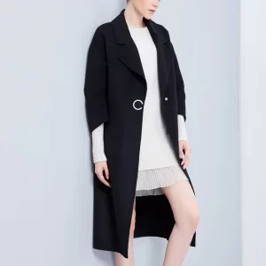 Autumn New Lapel Long Sleeve Double-faced Wool Fabric Jacket Ladies Straight Black Slim Women Coat
