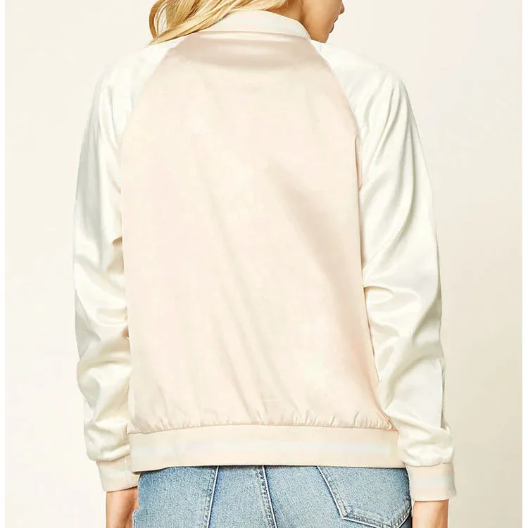 Autumn Jacket Women Zipper Closure Collar Ribbon Decorations Floral Embroidery Satin Bomber Jacket