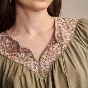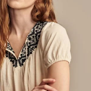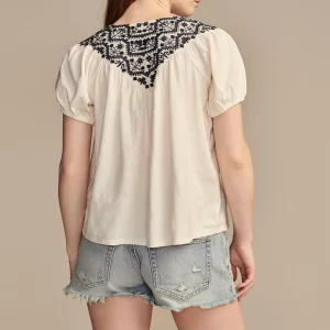 Chic Embroidered Floral Cotton Top with Puff Sleeves