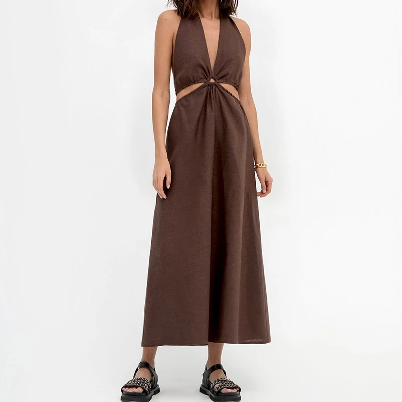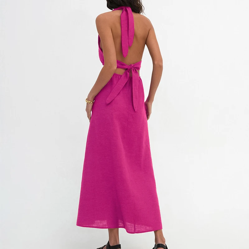 2024 Fashionable Style Halter Backless Women Long Casual Summer Sexy Dresses