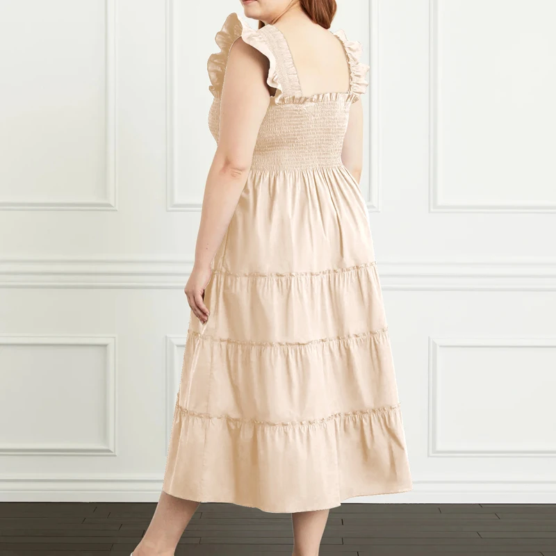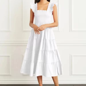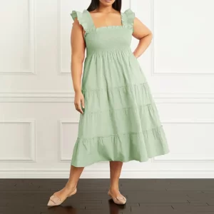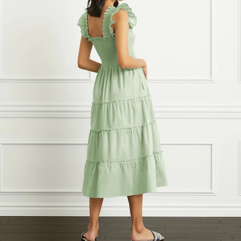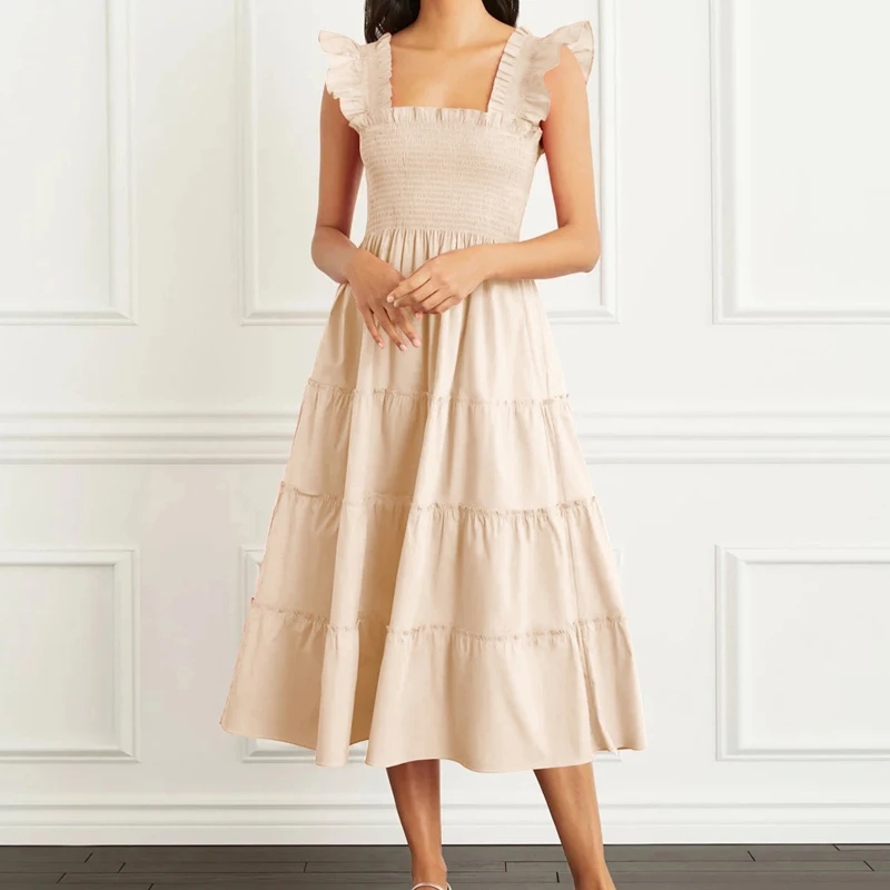 Best Selling Square Neck Ruffle Shoulder Flare Clothing Women Fashion Casual Elegant Dresses