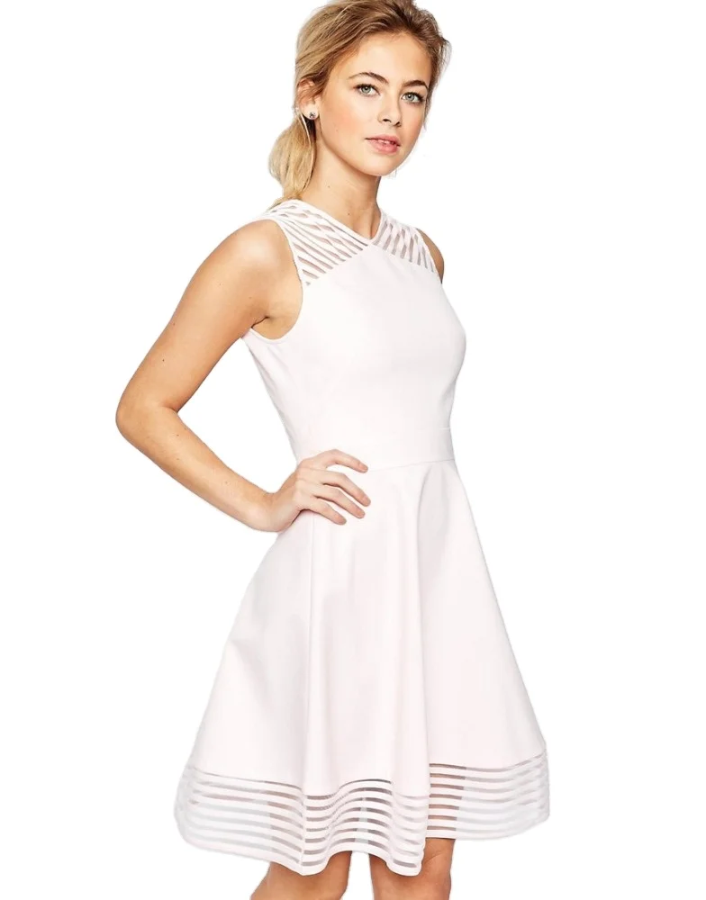 Casual Summer Sleeveless White Mesh Skater Dress Women Solid A-line Breathable Sporty Dress