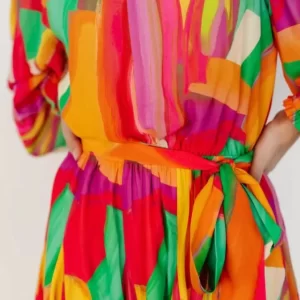 Chiffon Color Blocking Vacation Mini Ladies Dress