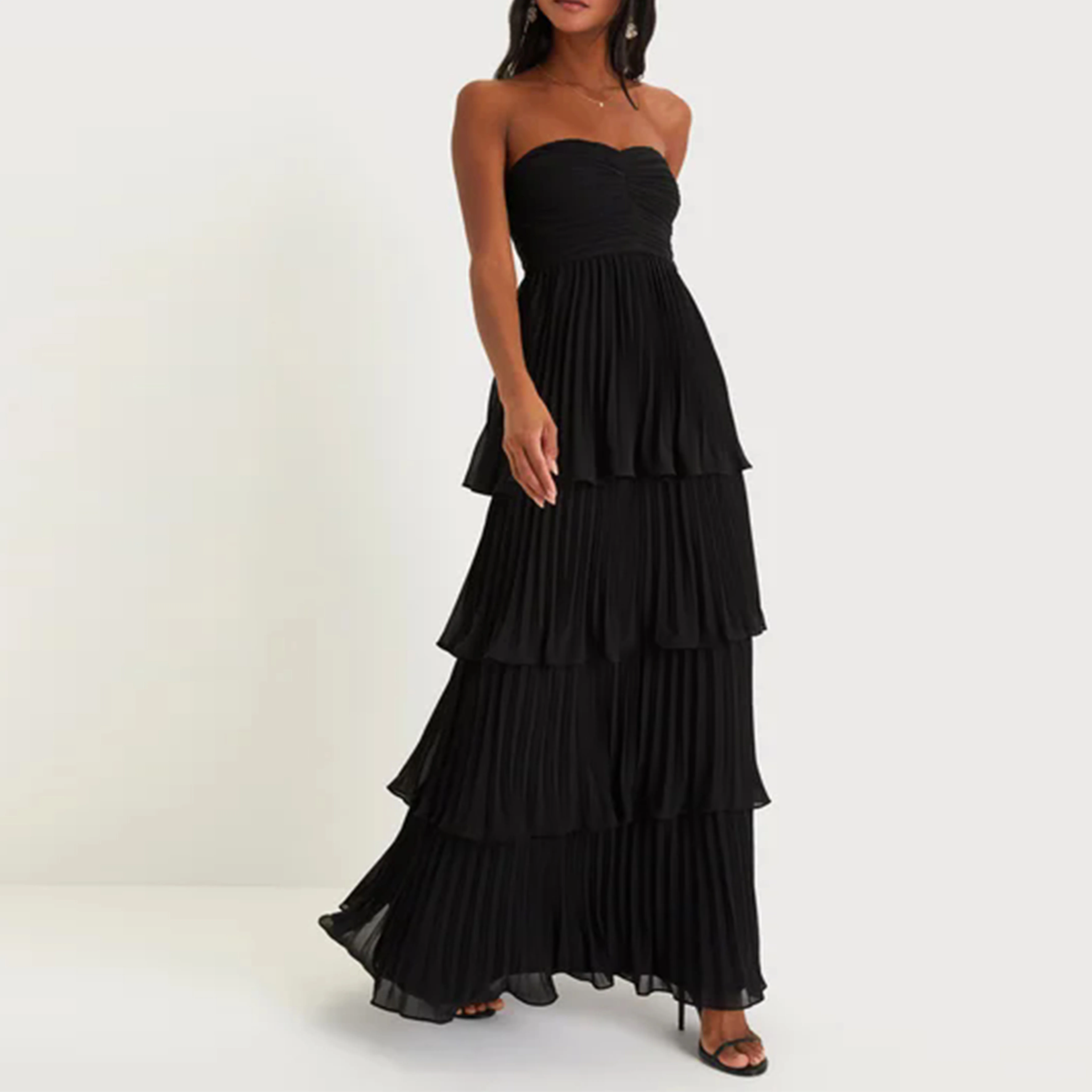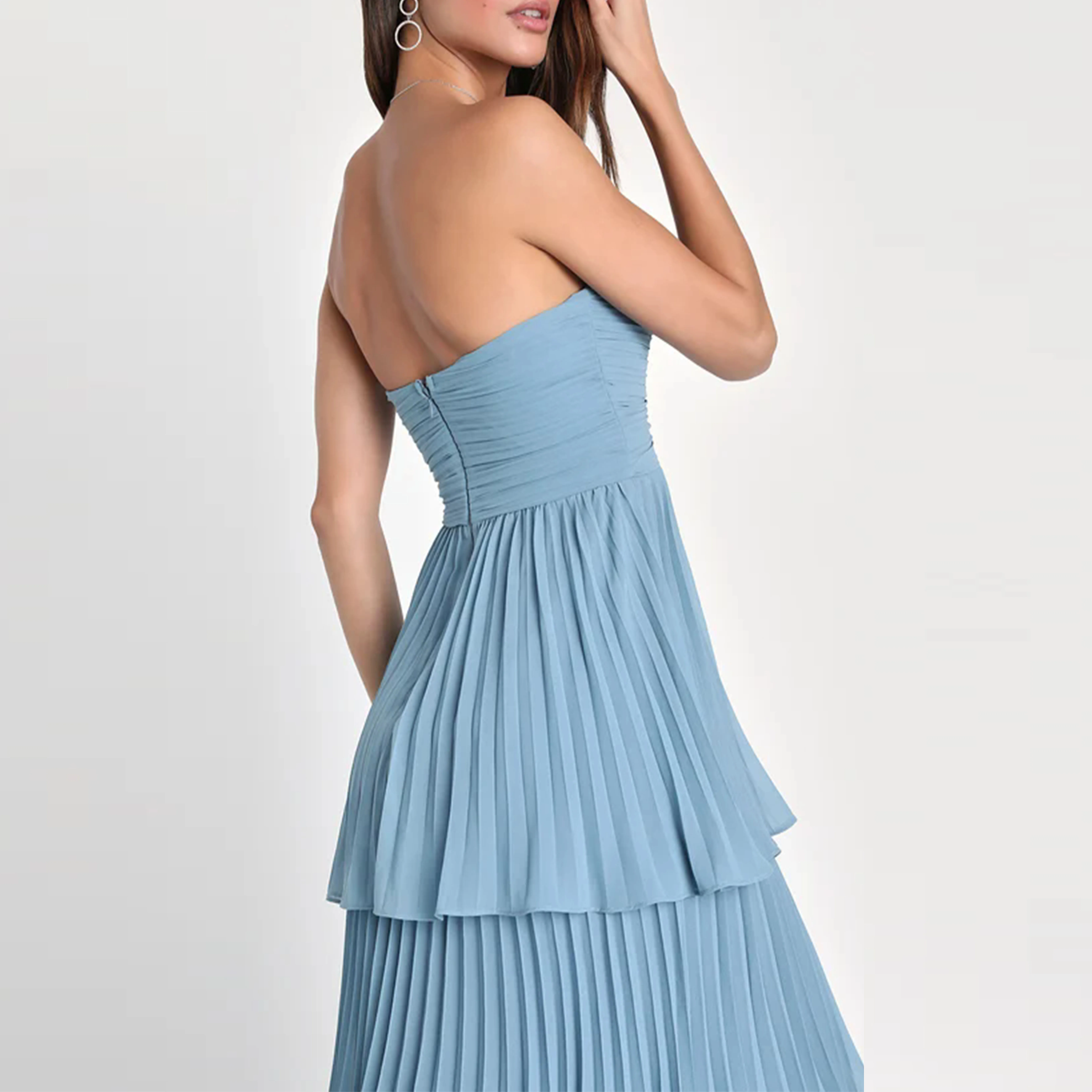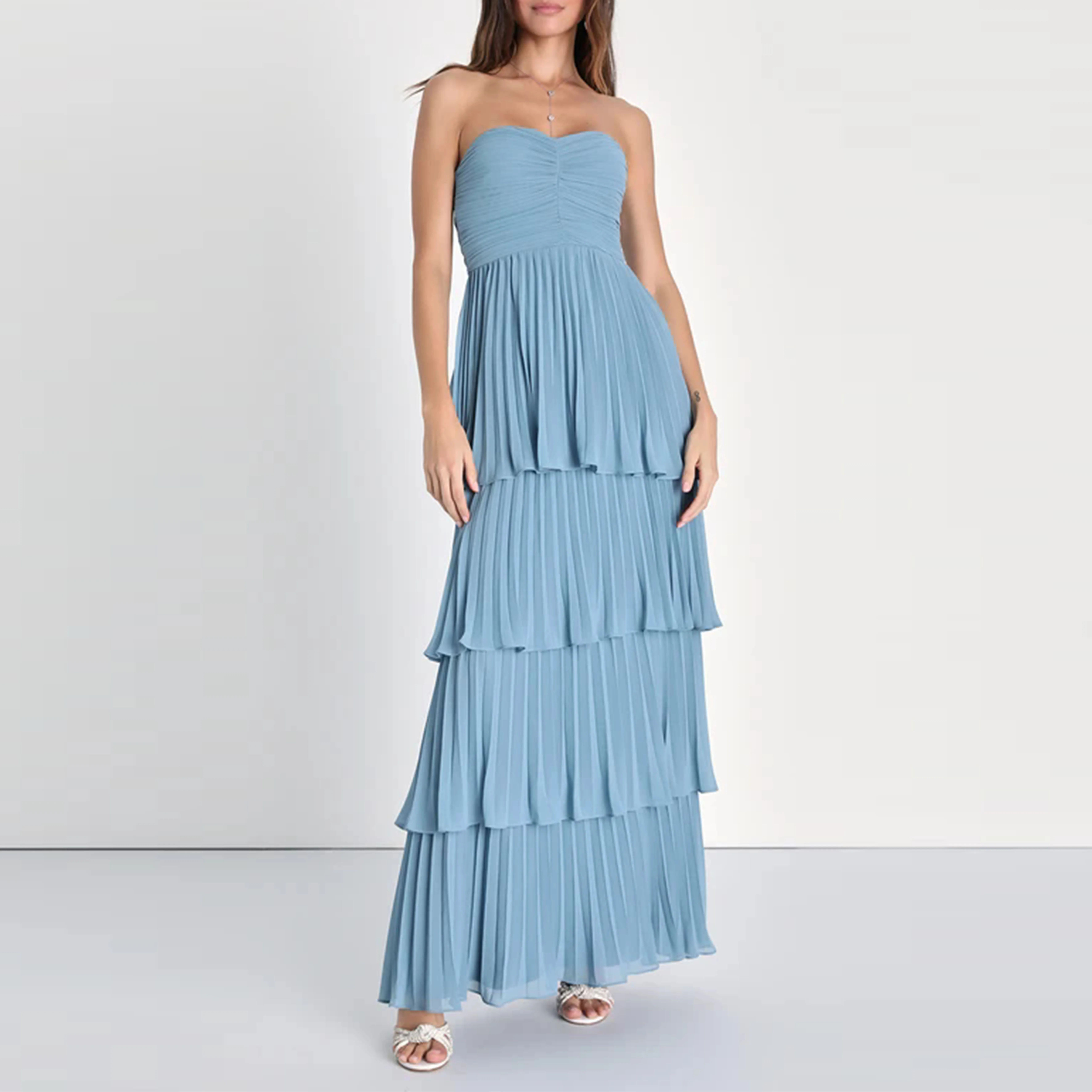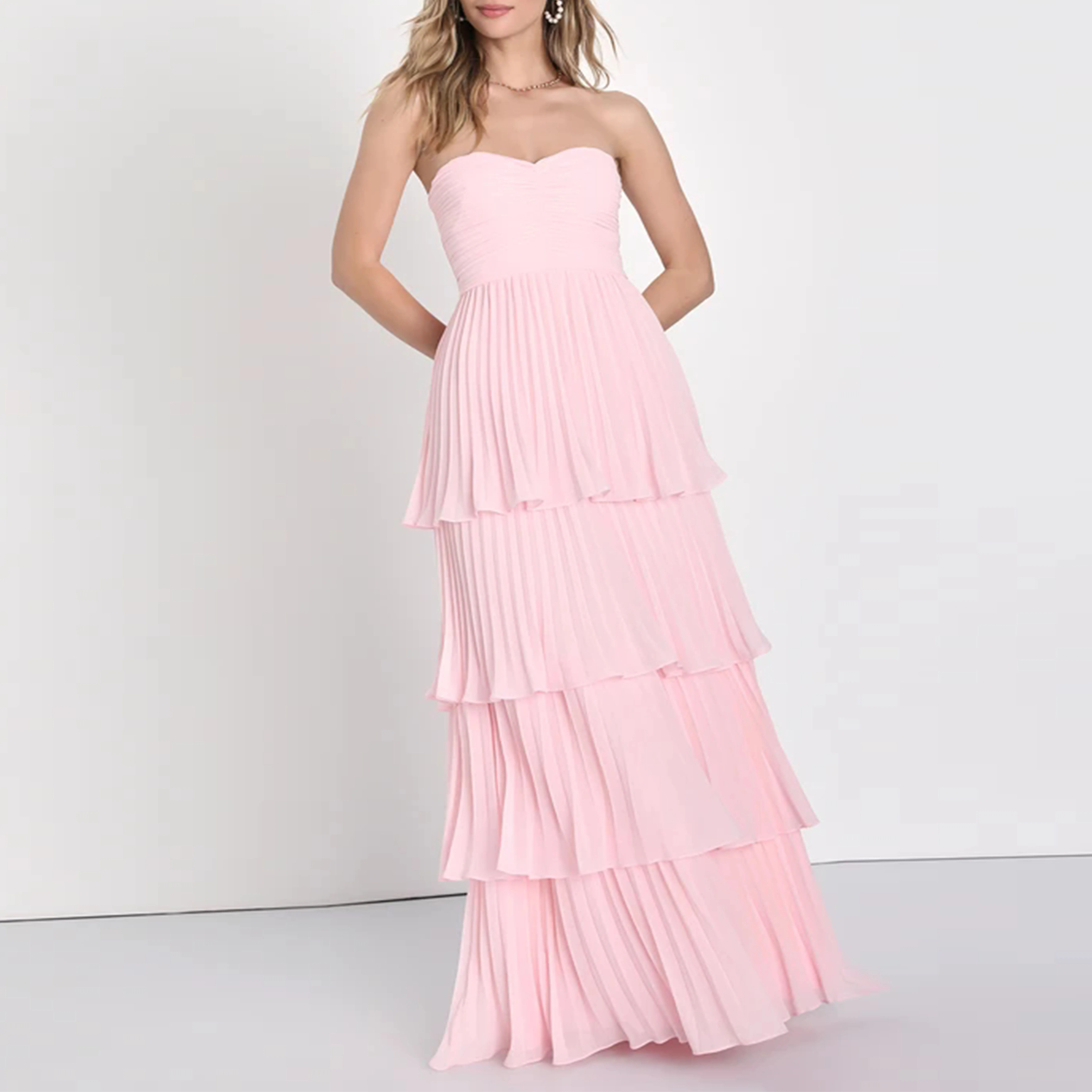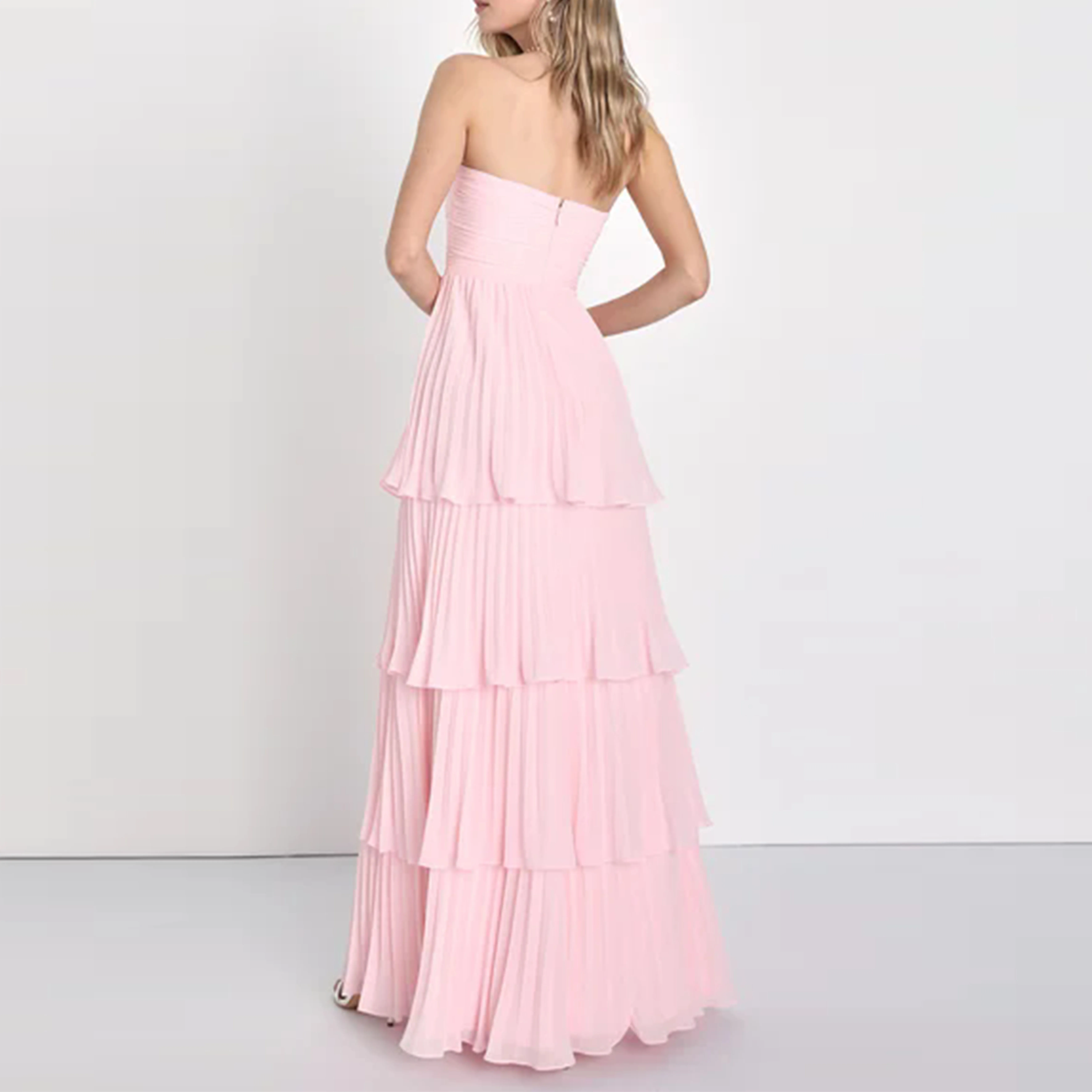 Chiffon Strapless Tiered Sweet Girls Maxi Dress