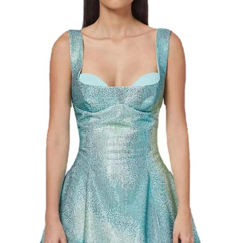 Design Green A Line Square Neck Backless Women Sexy Party Casual Elegant Night Mini Dresses