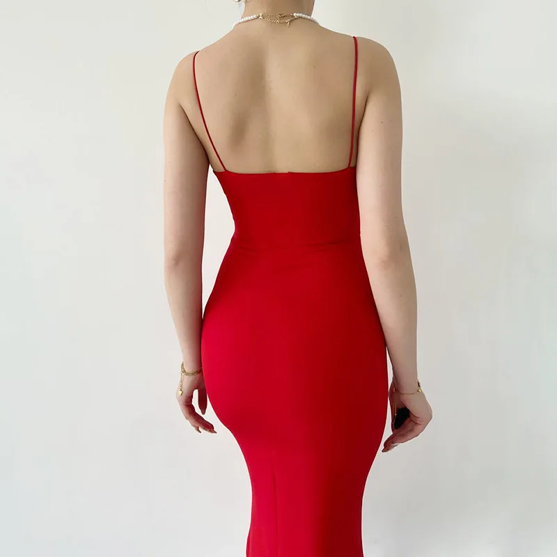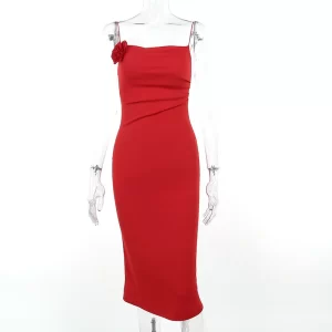 Design Strapless Square Neck Slim Fit Women High Quality Elegant Midi Dresses