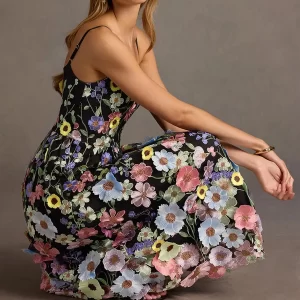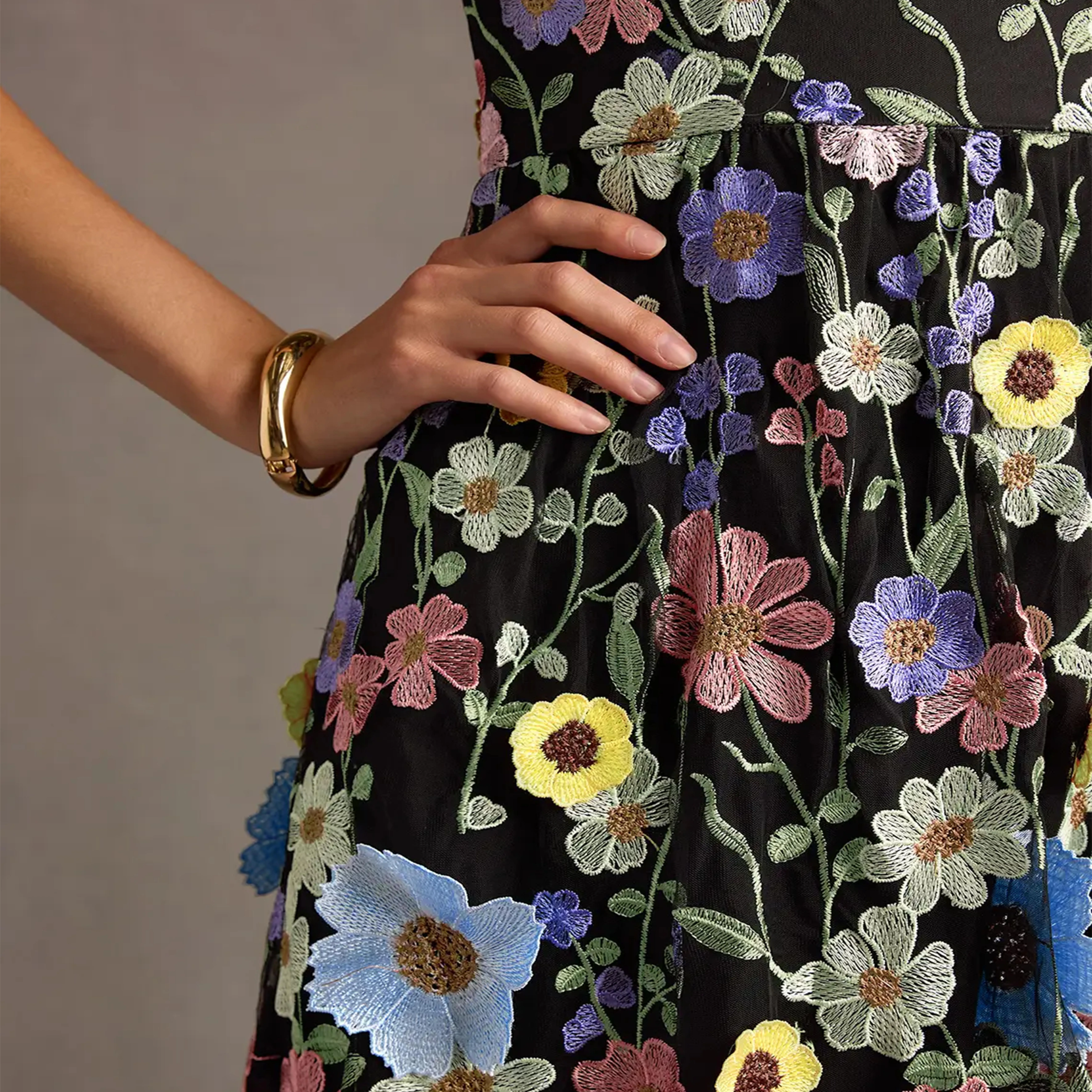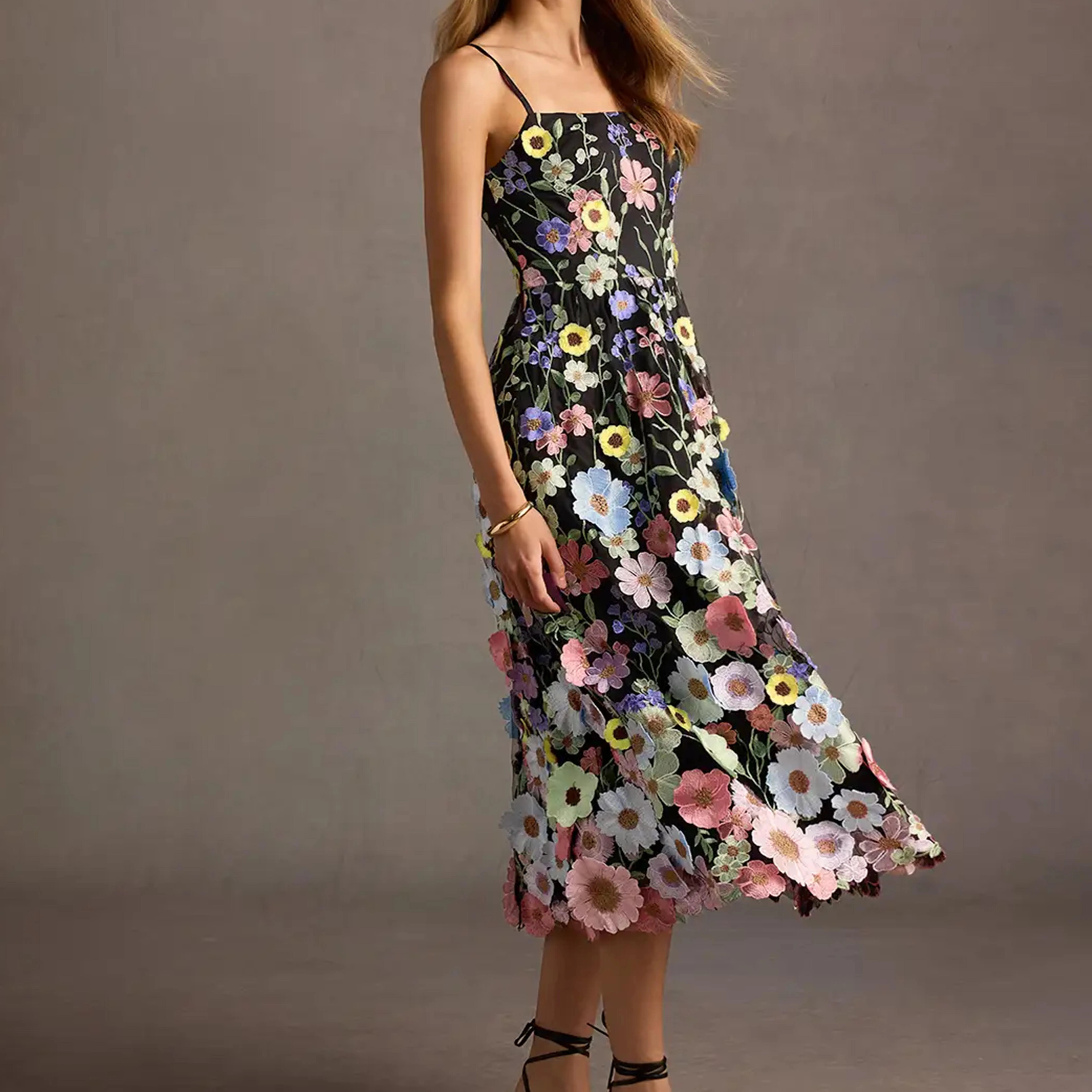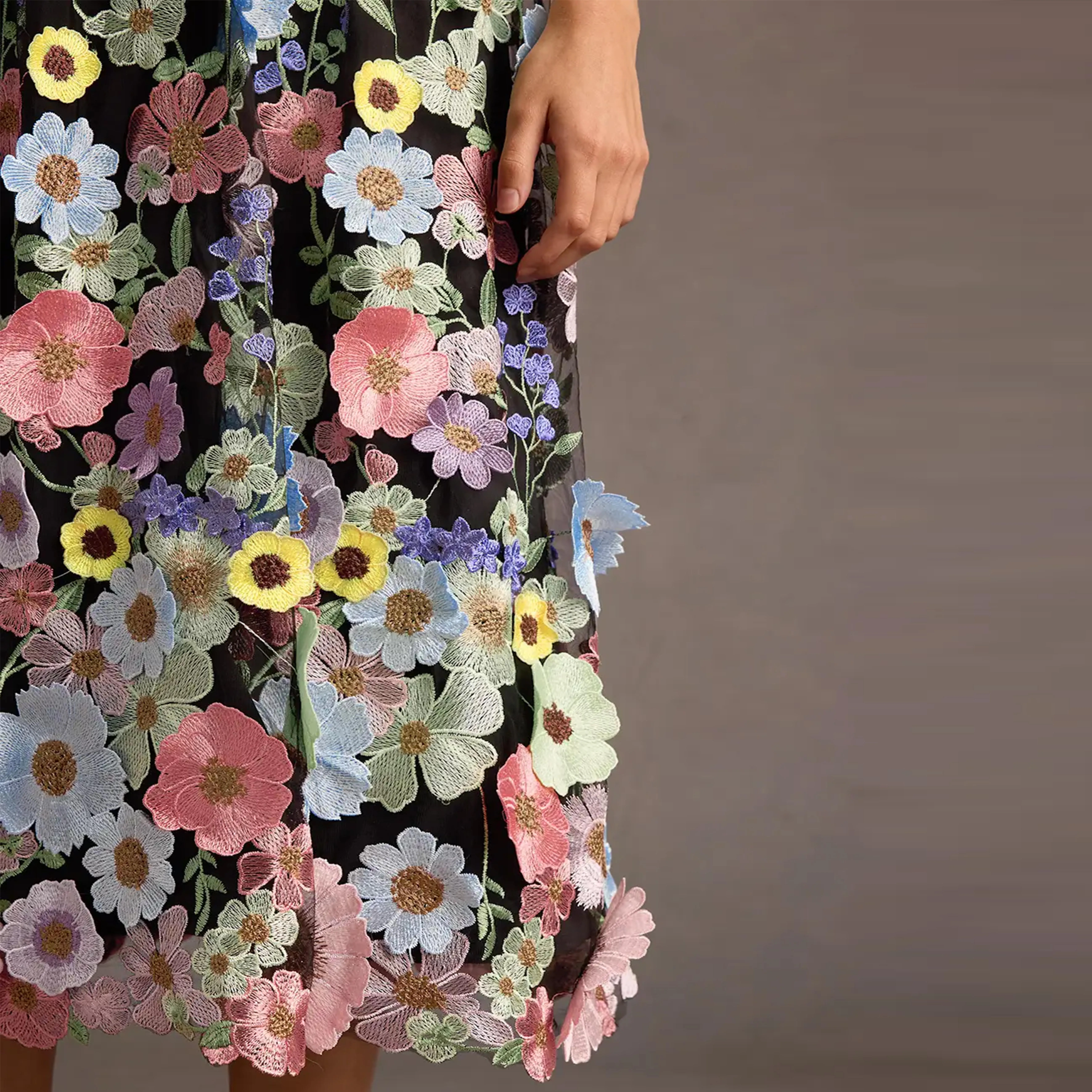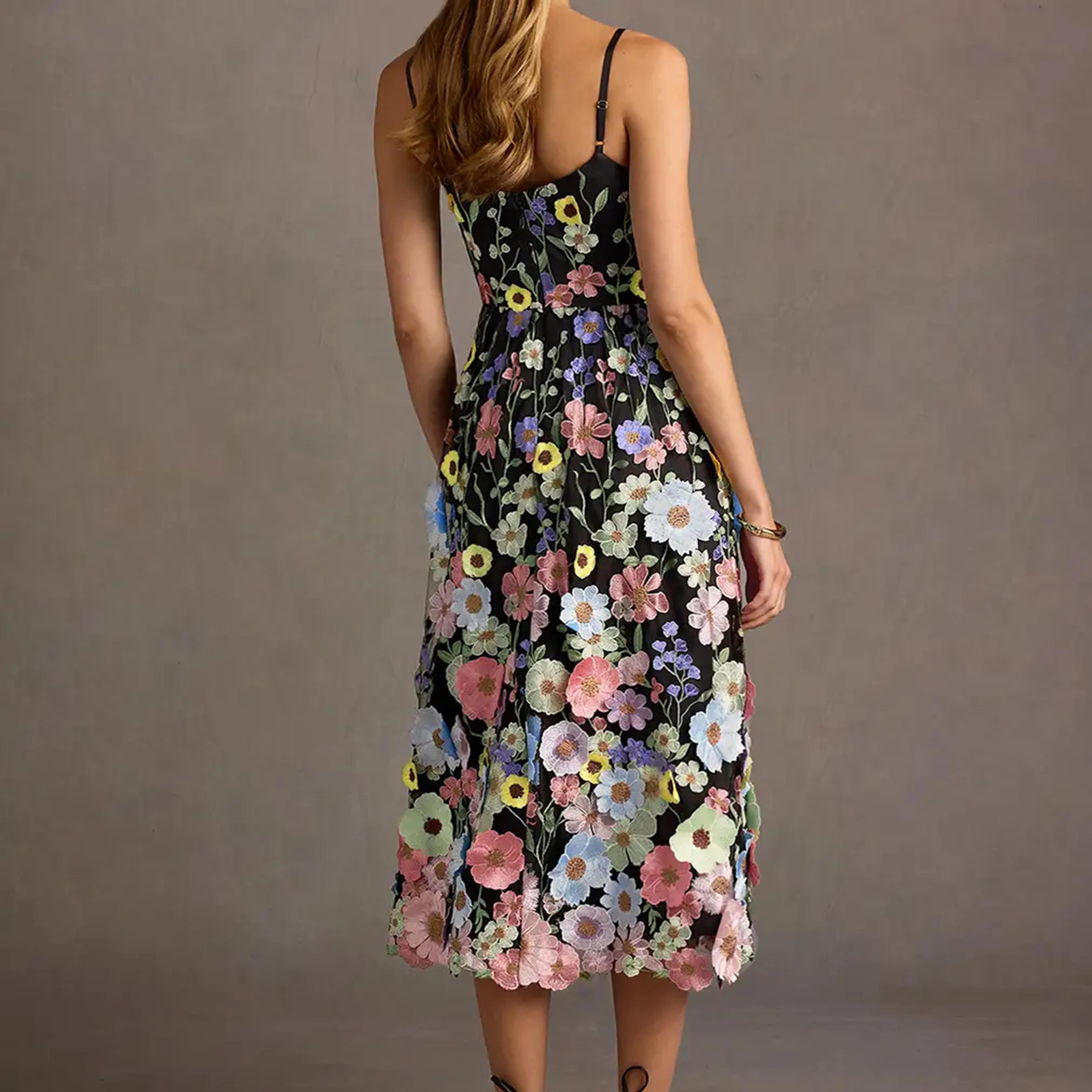 Elegant Delicate Embroidered Lace Floral Midi Dress Sheer Sleeveless Party Wedding Gown