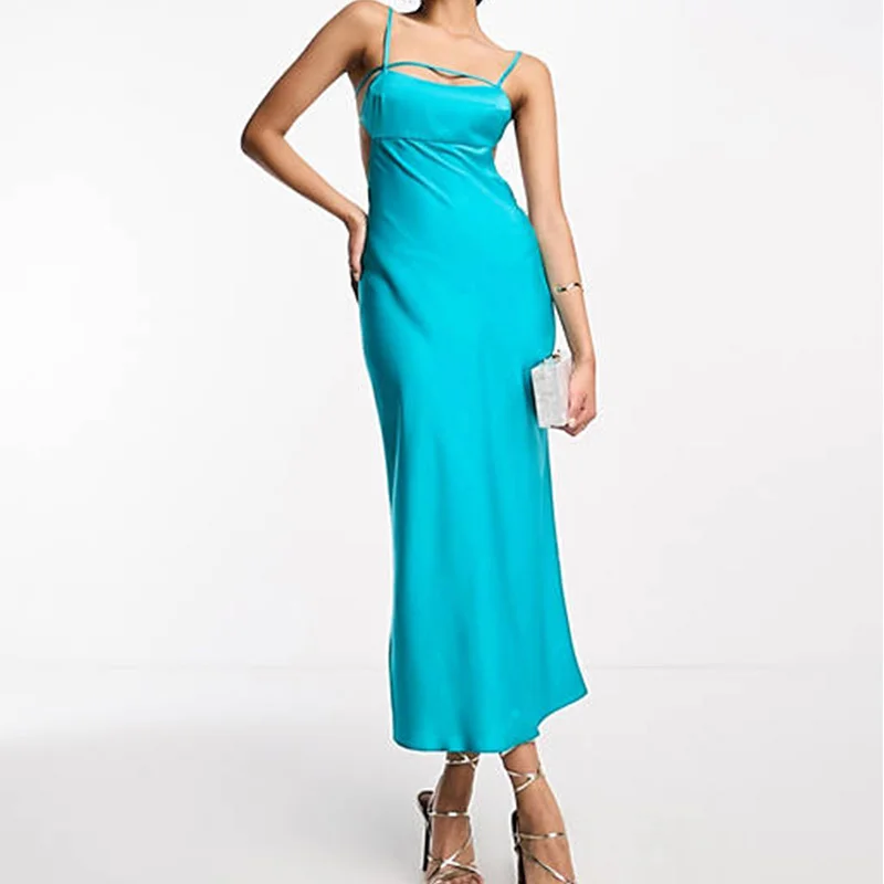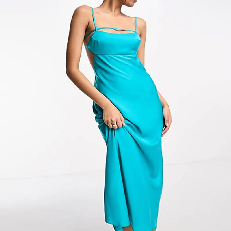 Evening Elegant Ladies Elasticated Straps Sexy Open Back Cozy Satin Comfortable Dress Women Dress