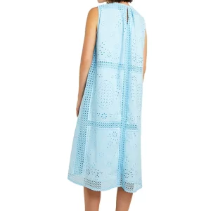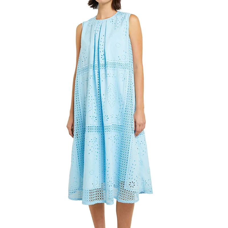 Eyelet Modest Style Women’s Solid Sleeveless Embroidered Eyelet Sleeveless Loose Midi Dress